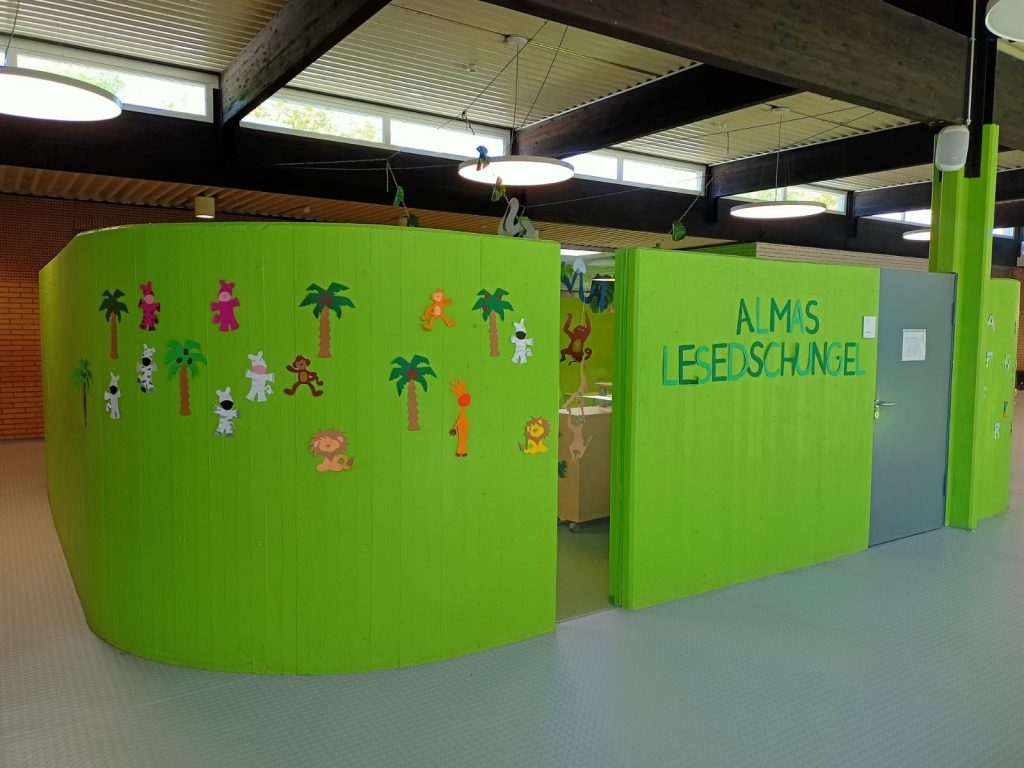 Im Schuljahr 2021/22 wurde unsere Schulbibliothek mit dem Namen „ALMA-Lesedschungel“ eröffnet, die wir gemeinsam mit der Marienschule nutzen und betreiben. Die Schülerinnen und Schüler können dort nach neuen Büchern stöbern und diese ausleihen. Außerdem finden sie dort gemütlich Ecken, in denen sie entspannt lesen können.