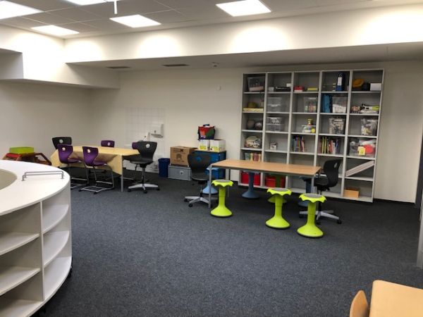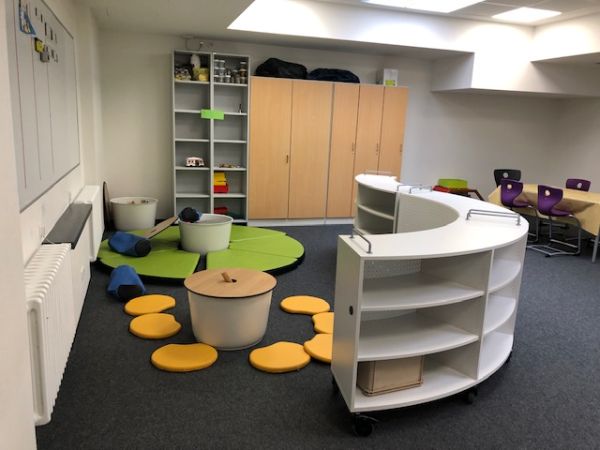 Neben den Klassenräumen befinden sich Förderräume im Schulgebäude, in denen Schülerinnen und Schüler sich noch einmal in Kleingruppen intensiv mit Lerninhalten beschäftigen können.